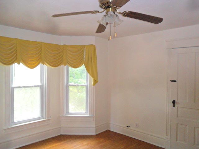 Hardwood floors, dining room, bay window, charming original fireplace.
